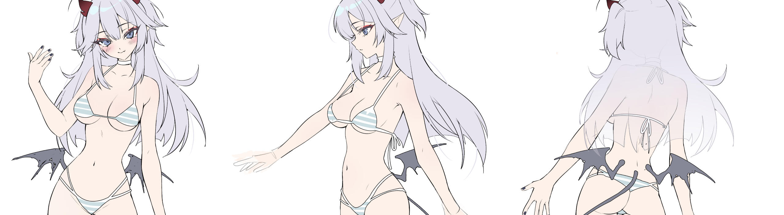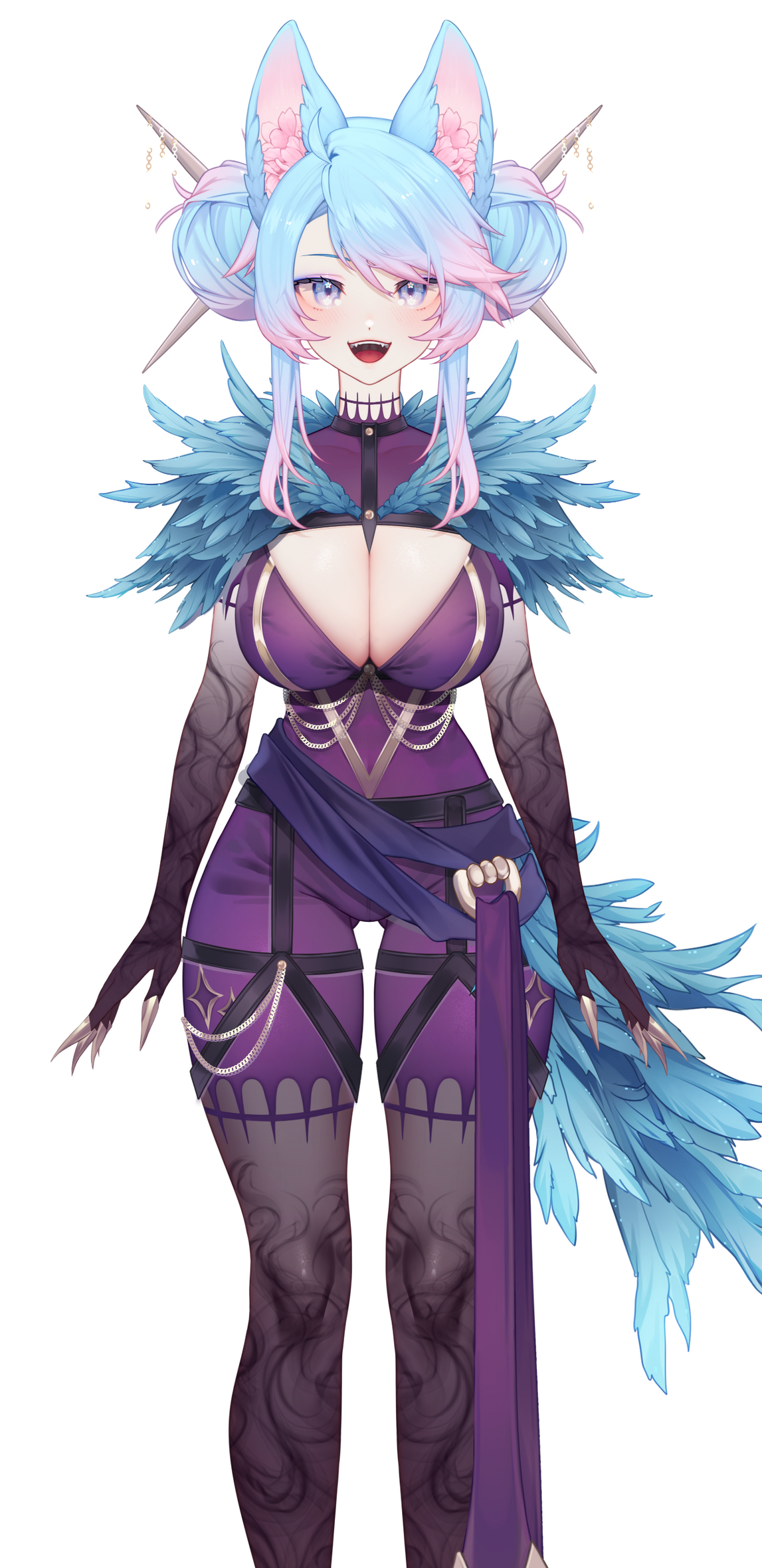 Each model includes a main outfit, one hairstyle, five expressions, a layered PSD ready for rigging, a clean PNG for reveals or assets, and a reference sheet of expressions and poses. You’ll also receive priority for my future commission slots.Extra outfits require a model base (please ask in advance). Commercial rights are included, and payment plans are available on request.